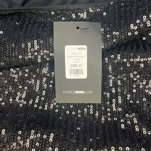 NWT Fashion Nova Sequin Romper Black Glitz Glamour Size 2X