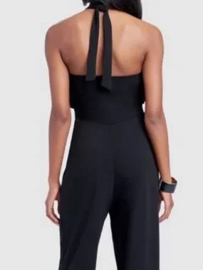 Bebe NWT Black Halter Ruffle Wide Leg Jumpsuit Size 4