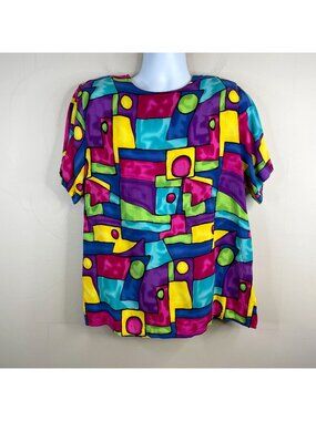 Vintage 80s Top Womens XLarge Art To Wear Bold Statement City Chic Graffiti