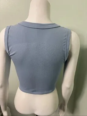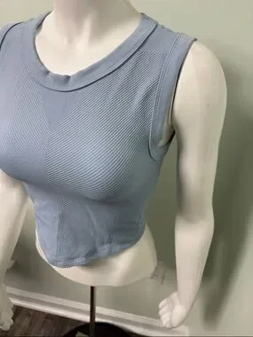 FP Movement Women Size M/L Free Throw Muscle Tank Textured Steel Blue Cropped