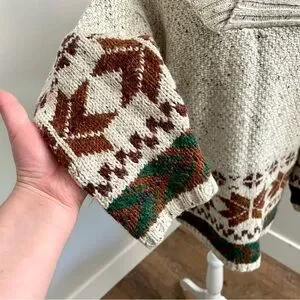 Vintage Grandpa Hunting Preppy Style Sweatshirt. Collared. Cream color with speckled detail and a Fairisle print along the hem. Wool blend. Size men's small but fits oversized. Excellent condition.