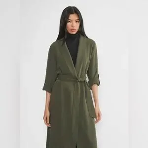This is a wrap jacket with a removable belt, patch pockets and side slits. It's made with Mirror Crepe™ — Babaton’s essential crepe fabric with a soft drape and silky satin back. This fabric is sourced from an innovative Japanese mill