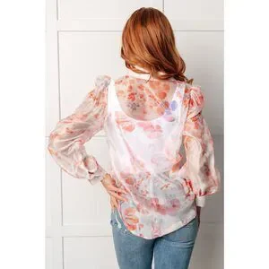 Call Me Back Sheer Floral Button Up Blouse