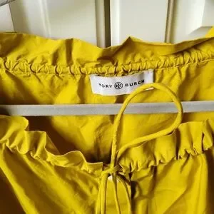 Tory Burch Tie Front Poplin Short Sleeve Blouse Top Mustard Size 8