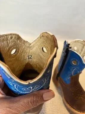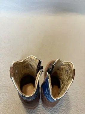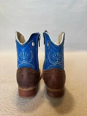 Unbranded size 12 Brown & Bright Blue Toddler’s Western Zip up Boots