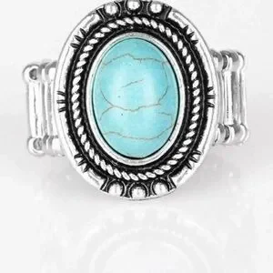 Elegant silver-tone ring featuring a turquoise-colored oval stone. Classic boho style that complements casual and dressy outfits. Lightweight and comfortable for daily wear. Turquoise color adds a fresh, natural pop.