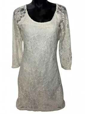 Abercrombie & Fitch Cream Lace Long-Sleeve Scoop Dress