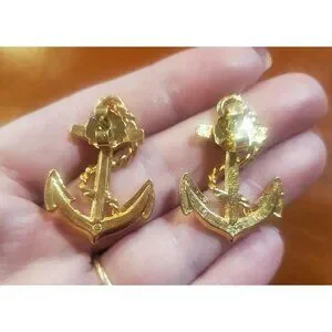 Anchor Gold Tone Nautical Theme Earrings Dangle Metal Fashion Jewelry 1.25"