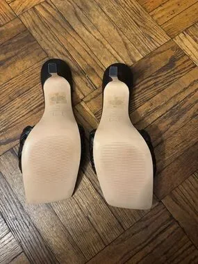 Marc Fisher Black Braided Square-Toe Slide Mules