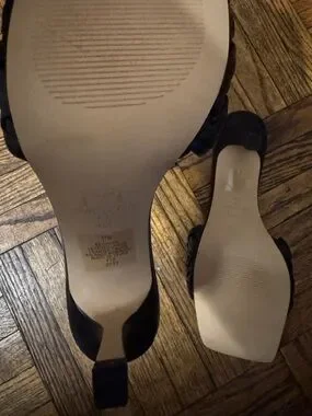 Stylish Marc Fisher slide mules with a braided leather strap. Smooth square-toe silhouette for modern appeal. Slip-on design for easy wear. Versatile black color pairs with many outfits.