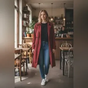 Ruby red trench coat/jacket with warm removable inner liner. In great condition.