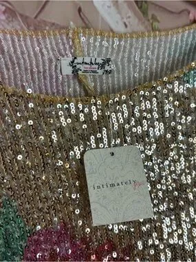 NEW Free People Gold Rush long sleeve top in a champagne floral sequin
