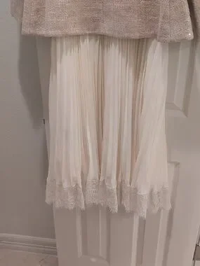 Self-Portrait Pale Blush Cream Tweed Blazer Buttons with Long Skirt With Lace