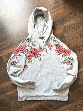 Topshop Flower Embroidered Hooded Sweatshirt - Lightweight - Size S
