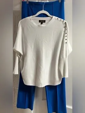 2 pc Bold cobalt blue fabric with crisp. Long sleeve white top sz M. Modern, wearable silhouette.