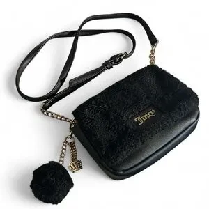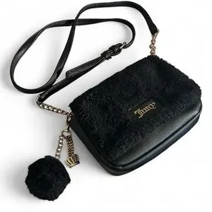 Juicy by Juicy Couture Crowning Glory Black Faux Fur Crossbody Bag with Charms