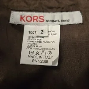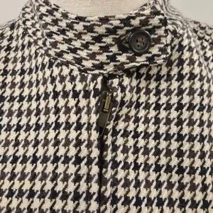 100% wool with interior lining. Zips up the front, buttons at cuffs with side pockets.