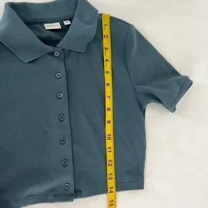 Sunday Best Aritzia Size XS Cropped Polo Cardigan Teal Blue Button Front Top
