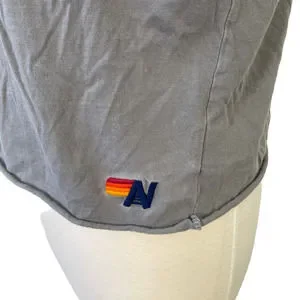 Aviator Nation Gray Short Sleeve Tee with Orange Red Sunset Patch