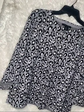 Tahari Gray and Black Leopard Print Knit Pullover