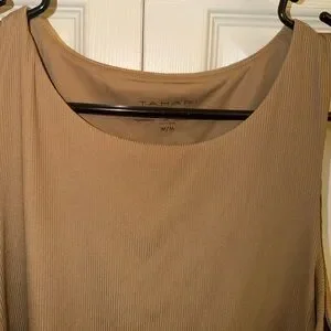Tahari Ribbed Sleeveless Tank Top in Camel Brown