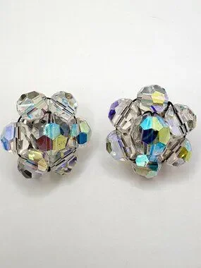 Aurora Borealis (AB) beaded cluster earrings with iridescent sparkle (Measurement: 0.75")