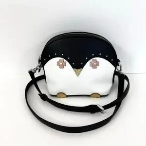 Kate Spade Penguin Crossbody Bag Dome Leather Black/White Novelty Purse