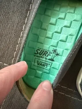 💎Used but good condition. Gray canvas upper, vulcanized rubber sole. Spearmint green padded insole for comfort. Size 7. Lots of life left in these! Hard to find, these are not produced any more.
