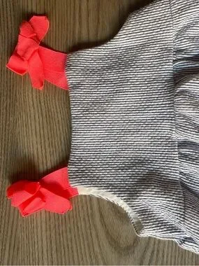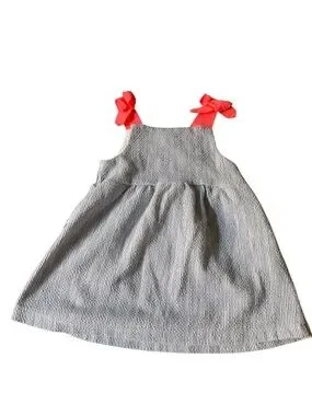 Girls Seersucker Stripe Dress with Coral Bow Straps