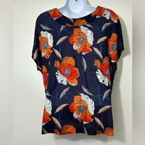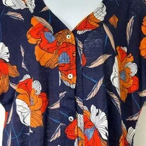 Tahari Womens Size Large Linen Button Front Top