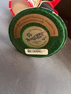 Decorative red drummer soldier ceramic figurine with detailed gold trim and black hat. Bright red jacket and realistic drum accents offer festive tabletop appeal. Lightweight ceramic construction for easy placement and display.