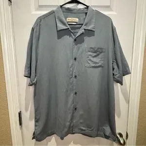 Tommy Bahama Original Fit Men's XL Silk Short Sleeve Button Down Shirt Grey