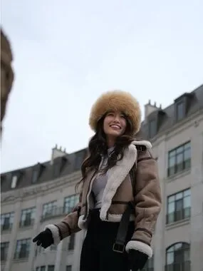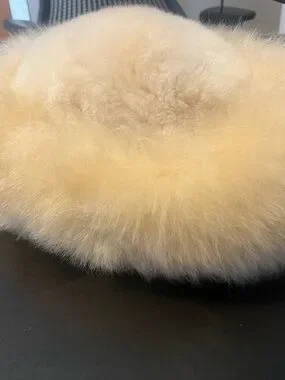 Purchased in Peru 🇵🇪 this year. Cozy hooded hat with real Alpaca fur inside it’s lined with silk. Beige outer with darker trim accents. Real fur adds luxe texture. Warm and stylish winter staple.