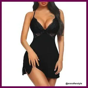 [ORIGINAL_TITLE: Lace Chemise Babydoll Sleepwear Elegant Sheer Panel Adjustable Straps]