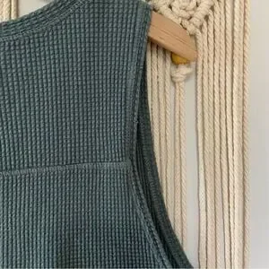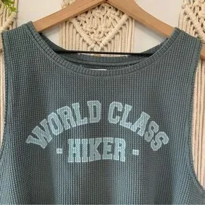 AERIE WOW! Offline Cropped Waffle Tank Top World Class Hiker Blue Green Large