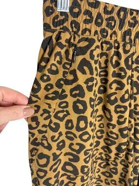 Leopardo Mini Desert Khaki Multi. Lightweight, made from Swift fabric that is sweat-wicking, quick drying with 4 way stretch. Mid rise, full length, wide leg, relaxed fit. Zippered hand pockets with a hidden card sleeve and continuous drawcord.