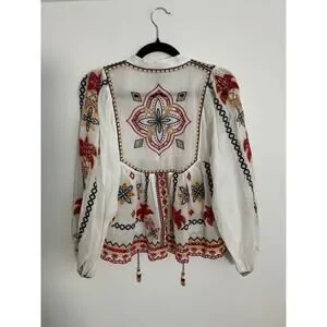 FARM RIO Mary's Tiles Multicoloured Floral Embroidery White MEDIUM