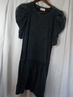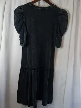 Small Dark Acid Watch Retro 80s SO Charcoal Drop Waist Cotton Dress Puffy Sleeve
