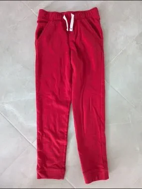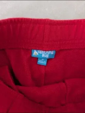 Bright red Lightning Bug sweatpants in size 10, new without tags. Soft cotton blend with an elastic waistband and white drawstring for an adjustable fit. Features two front pockets and ribbed cuffs for a tapered jogger style. Comfortable and easy for everyday wear or lounging.