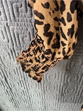 Ava & Viv Blouse Women’s X Leopard Long Sleeve Key Hole Closure