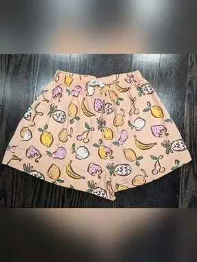 Soft H&M shorts in size US 10 (9–10Y). Peach color with a fun all-over fruit print. Made from lightweight cotton with an elastic waistband for a comfy, easy fit. Perfect for casual summer days.