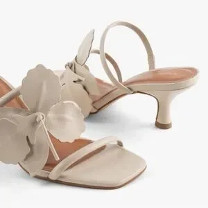 slip on sandals, kitten heels, flower, floral, 3d, open toe, slip-on, summer, spring, heeled, heels, nwt, neutral