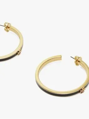 Tory Burch Gold and Black Enamel Hoop Earrings