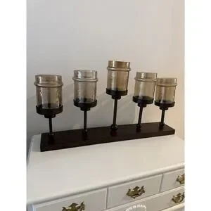 28" Hand Forged Bronze Hurricane Candelabra Candle Holder