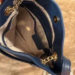 Michael Kors Navy Pebbled Leather Shoulder Bag with Gold Chain Strap