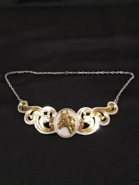 Montana Silversmiths Horse Head Necklace Two Tone Western Scroll Collar