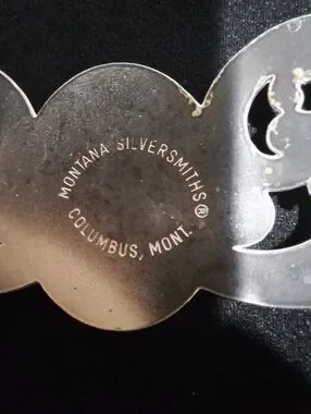 Two-tone design with gold-tone accents over a silver-tone base, showcasing the signature Montana Silversmiths style. Larger statement centerpiece with strong detail, perfect for rodeo, Western wear, or everyday styling with character.