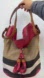 Stylish hobo bag in pink leather trim and tan striped canvas. Soft leather accents and tassel detail for a chic finish. Comfortable shoulder strap and versatile crossbody option. Perfect for everyday use and elevated casual looks.