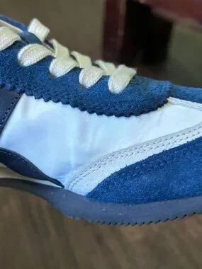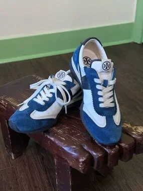 Tory Burch blue white Suede Leather Sneakers Retro Runner Preppy trainers