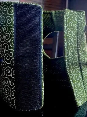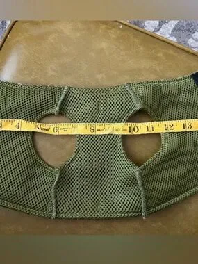 Stylish green pet harness with white swirl pattern. Features a decorative gold-tone charm. Comfortable mesh lining. Secure and fashionable design. Good gently used condition. Size small